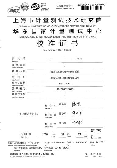 -報(bào)告內(nèi)容:系統(tǒng)可生成檢測(cè)報(bào)告,報(bào)告內(nèi)容包括行人行包進(jìn)入通道時(shí)間、離開通道時(shí)間、輻射水平、有無(wú)報(bào)警、報(bào)警類型、報(bào)警級(jí)別、通過(guò)車速、本底輻射水平、報(bào)警閾值等信息